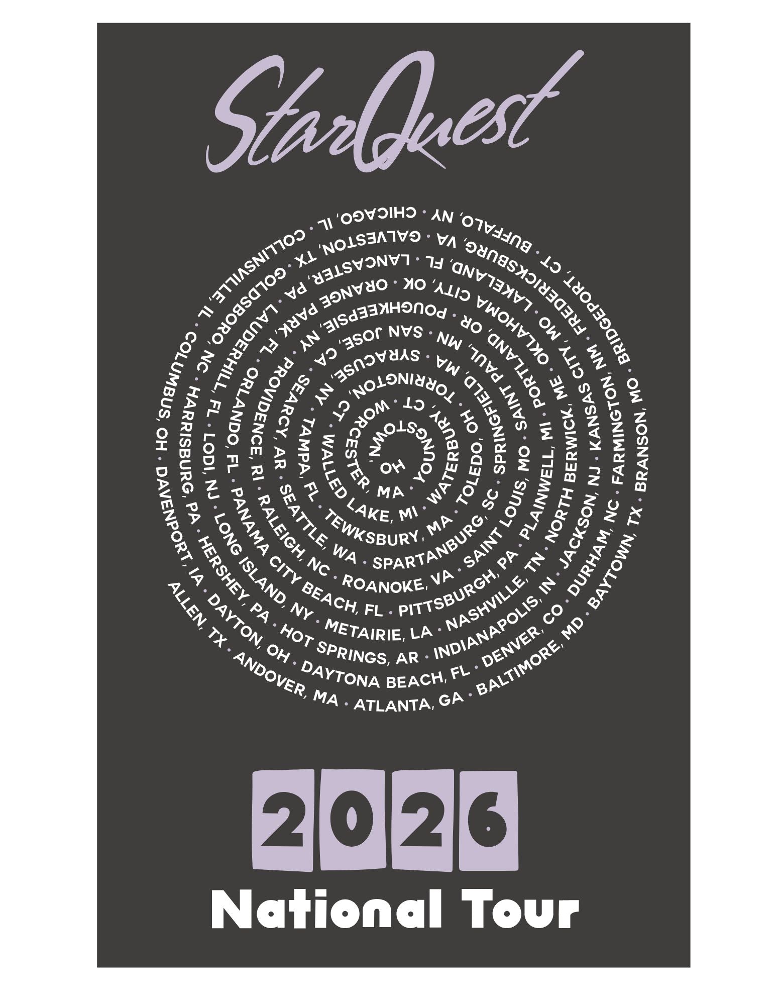 2nd of our 2 NEW 2026 StarQuest Tour Shirts! Available in sizes Youth Small through Adult 2XL!!